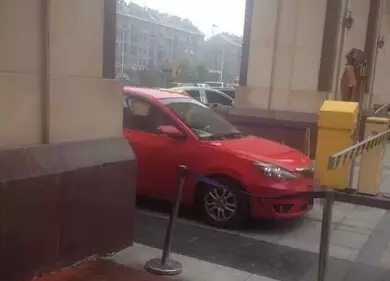 一波未平一波又起,被堵在门口的不只他自己,没过多久,又有一辆红色轿车发生了同样的事情,车主把车停在了门口,径直进入小区。