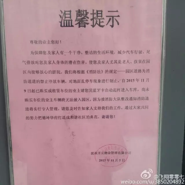 按理说,不应该啊!自己家都不让开车进门了,为那般?据网友反映,原因居然是一张“温馨提示”的告示: